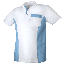 polokraag met drukknopen; korte mouw; 2 zijzakken; zijsplitten; beleg: 65% polyester /35% katoen, 210 g/m²;